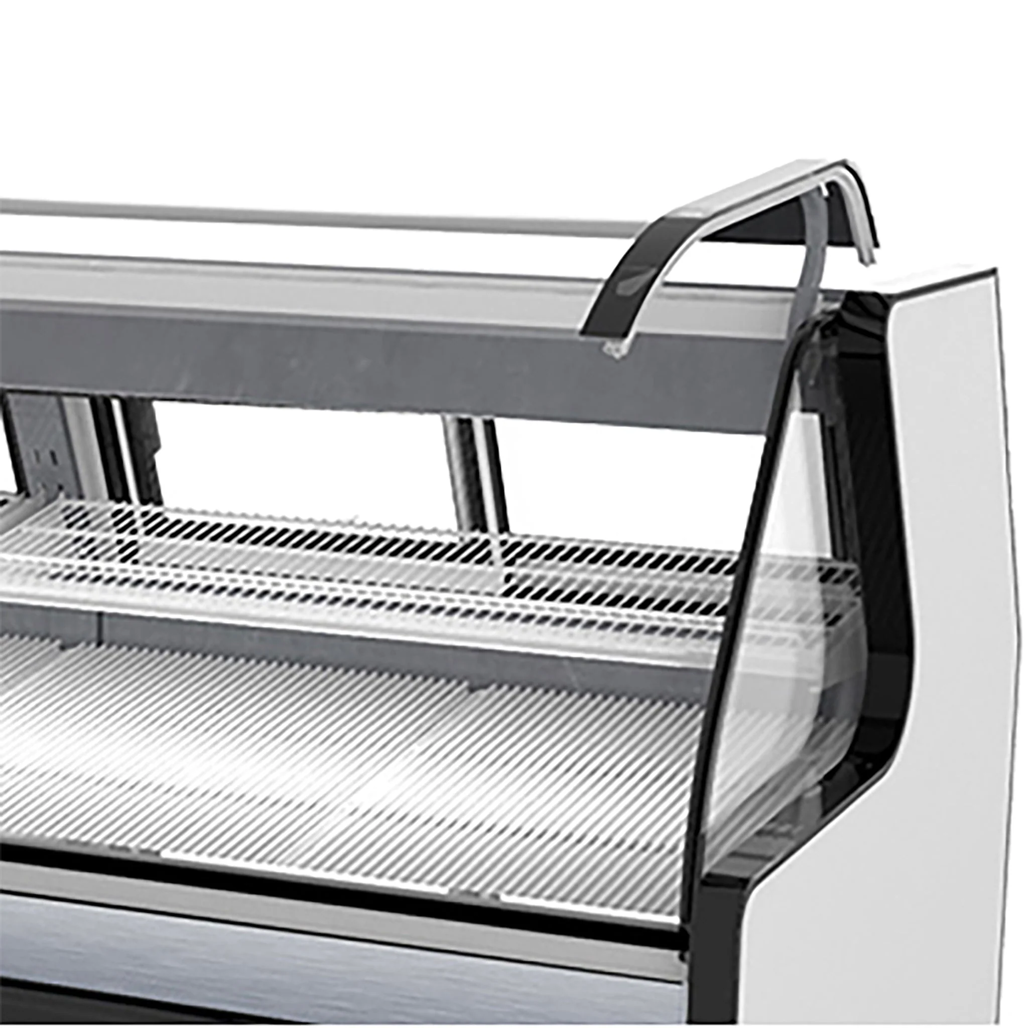 - Interior display gravity coil cooling system provides a properly chilled environment without use of forced air fans, promoting longevity of displayed product
